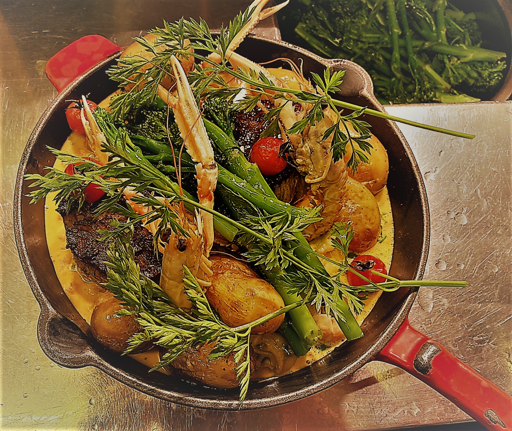LUNCH MENU STARTERS €10 MAINS €19* DESSERTS €8* BREAD FOR THE TABLEHOUSE MADE SHALLOT & TOMATO MUFFIN BREAD, TENUTA MANELLI EXTRA VIRGIN OLIVE OIL, SEA SALT, CIDER MARINATED OLIVES €4 6,7,8,9,10,11,12 (ALL BREADS CONTAIN WHEATEN) PRE-LUNCH-DRINKAPEROL SPRITZ €12 ITALIAN ORGANIC BLOOD ORANGE & PROSECCO €11 TO START HOUSE MADE IRISH GOATSHOUSE MADE IRISH GOATS CHEESE PARFAIT, CAPONATA, CRISPY WONTON, BALSAMIC DRESSING 6,7,8,9,10,11,12) CAJUN SEAFOOD CAJUN SEAFOOD CHOWDER, HOUSE MADE SHALLOT & TOMATO BREAD 3,4,5,6,7,8,9,10,11,12 BURRATA PRIME MOZZARELLABURRATA PRIME MOZZARELLA, PEPPERED LIVE YOGHURT, GRILLED PEACH, CIDER PICKLED VEGETABLES 5,6,7,8,9,10,11,12 CURED COPPACURED COPPA, FERMENTED FENNEL SALAD, SUN DRIED TOMATO & PASTRY ROULADE, HORSERADDISH CREAM 6,7,8,9,10,11,12 CHICKEN LIVERCHICKEN LIVER CRÈME LIME & CRISPY SHALLOTS, RED ONION JAM, TOAST 3,4,5,6,7,8,9,10,11,12 TO FOLLOW SLOW ROASTED SLANEYSLOW ROASTED SLANEY RIVER LAMB SHANK & ROASTED TOMATO & GUBEEN SAUCE, SUMMER ROOT VEGETABLE PUREE, CAJUN POTATOES 5,6,7,8,9,10,11,12 €25* SHOULDER OF PORK MEATBALLSSHOULDER OF PORK MEATBALLS, ORANGE JUS, TOMATO CRUMBS, PADRON PEPPERS, ROSTI POTATO 5,6,7,8,9,10,11,12 RISOTTO OF PRAWNSRISOTTO OF PRAWNS, CHILI, ROASTED RED PEPPER & SOFT HERBS 3,4,5,6,7,9,10,11,12 HERBAL RICEHERBAL RICE, BLACK GARLIC PULP, STEM VEGETABLES, CRISPY PARMESAN, BLACK SESAME, FETA CHEESE (VEGAN VERSION AVAILABLE) 6,7,8,9,10,11,12 ROASTED LEMON HADDOCKROASTED LEMON HADDOCK, SALT COD & & SHRIMP CROQUETTE, TRUFFLE FISH EMULSION, SPROUTING BROCCOLI, CAPER BERRY 3,4,5,6,7,8,9,10,11,12 ROASTED HALF DUCKLINGROASTED HALF DUCKLING, CACAO JUS, WILD MUSHROOM POT, FRIED POTATO 6,7,8,9,10,11,12 Vintage kitchen surf n turfTHE VINTAGE KITCHEN SURF & TURF FOR 2 PRIME IRISH FILETS OF BEEF WITH SHELLFISH, VEGETABLES & POTATOES €60 3,4,5,6,7,8,9,10,11,12 SIDES €3CAJUN POTATOES, BLACK GARLIC PUREE, GUBEEN CHESE 6,7,8,9,10,11,12 FERMENTED FENNEL SALAD 9,10,11,12 SWEETCORN & CHILI GRATIN 6,7,10,11,12 TO FINISHHALF BAKED CHOCOLATE CAKE, VANILLA ICE CREAM 6,7,8 BAILEYS ‘TIRAMISU’ 6,7,8 TIPPERARY BRIE, COOLEENEY CHEESE, STILTON, APRICOT PRESERVE, GRAPES & CRACKERS (€5 supplement) 6,7,8 SELECTION OF ICE CREAM & SORBET 6,7,8,9 COFFEE - TEA Coffee €2.70 Cappuccino €3.50 Espresso €2.80 Double shot €3.00 Latte €3.50 Hot chocolate €3.20 Chai Latte €3.20 Selection of tea’s €2.80 COOKED COFFEEIrish coffee €9 Baileys coffee €9 Calypso coffee €9